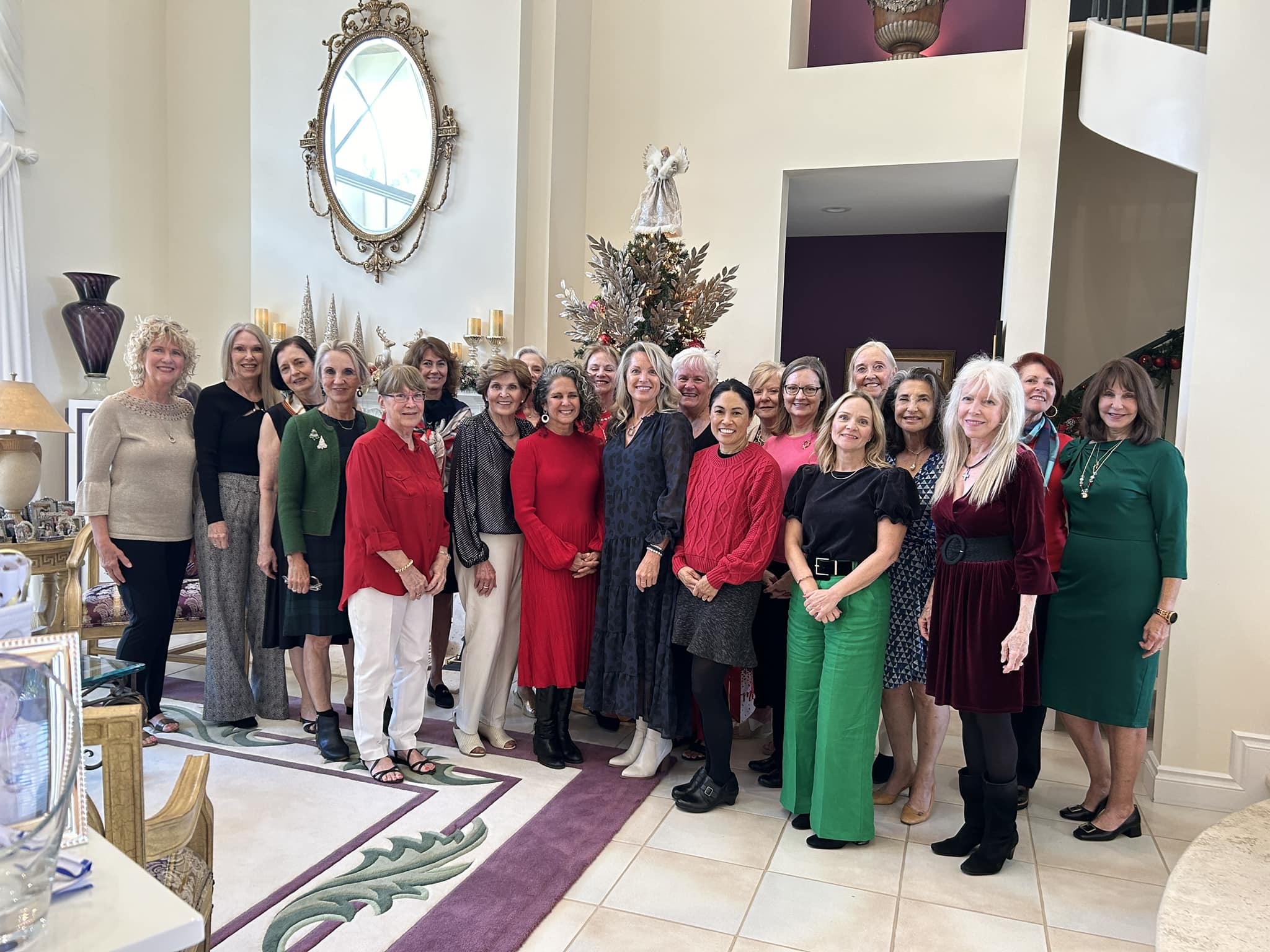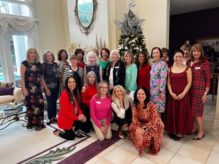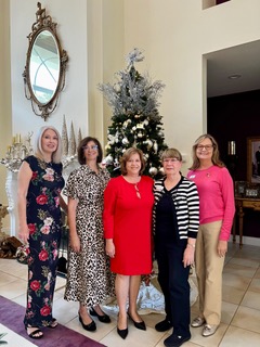 - We celebrated the Holidays with a wonderful lunch hosted by Pat Gage at her beautiful home. Our homemade Greek lunch was followed by a gift and cookie exchange. The current 5-Member Board and accompanying members had their portraits taken.