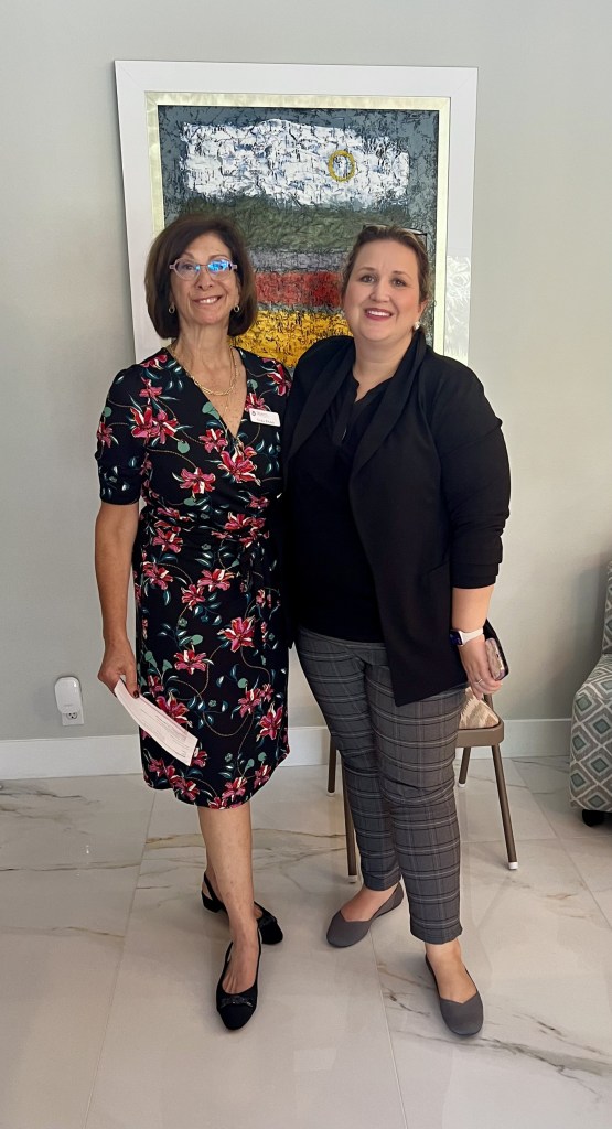 - October’s meeting was hosted by Vickie Dodds with speaker Michelle Duane, DNP. She is a triple board-certified, doctorate-prepared nurse practitioner with 22 years of experience in critical care, cardiology, and pulmonary medicine. As Director of Advanced Practice Providers at Cleveland Clinic Florida, she has led quality initiatives, education, and team development. She is a published scholar, national presenter, and recipient of the 2022 Cleveland Clinic NP of the Year Award.